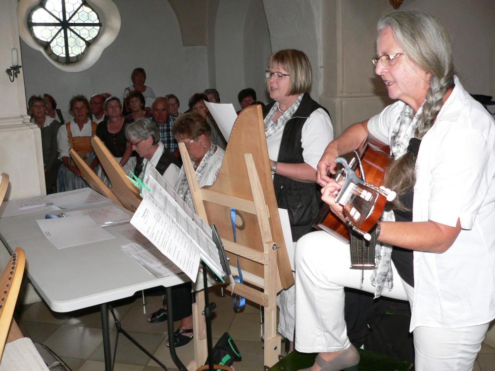 "Wenn des Kerzerl schei staad am Fichtenkranz brennt, ja, dann ist wieder Advent." Veronika Hille (Hackbrett), Renate Rögner (Zither) und Alexandra Lang (Gitarre) vom Zitherclub Erbendorf leiteten den musikalischen Part mit "A'Boarisch Tanzerl" ein, bevor Edeltraud Frank (Gesang) und Christa Böhm (Gitarre) vom "Josefshofer Hausg'sang" aus Premenreuth feststellten: "Ziagt d' Wind ei ins Land".